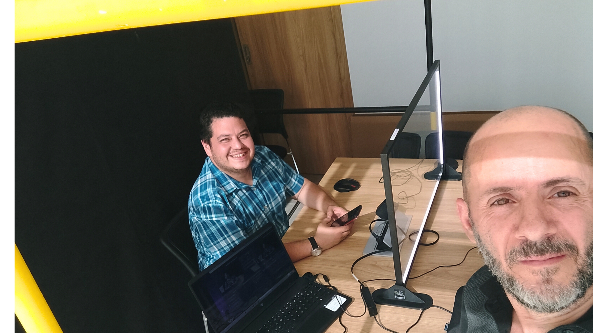 Arma la cabina profesional alrededor de tu escritorio en menos de 5 minutos. Si eliges el Set Pro, tendrás el control total de la iluminación con nuestras telas blackout laterales. Es tu espacio sagrado para crear.